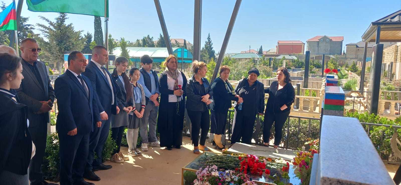 Mərasimdə şəhidimizin ruhuna dualar oxundu, məzarı üzərinə tər güllər düzüldü.