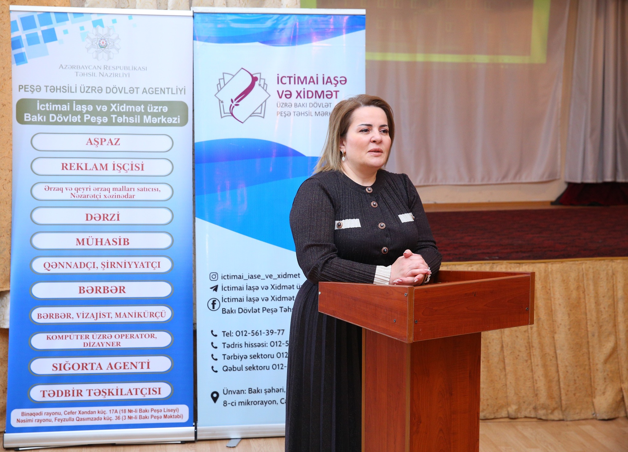 İctimai İaşə və Xidmət üzrə Bakı Dövlət Peşə Təhsil Mərkəzinin direktoru Fatma Çandirova çıxışında peşə təhsilinin ölkənin inkişafındakı strateji rolundan, gənclərin peşə təhsilinə olan marağının artırılması istiqamətində görülən işlərdən söz açdı.